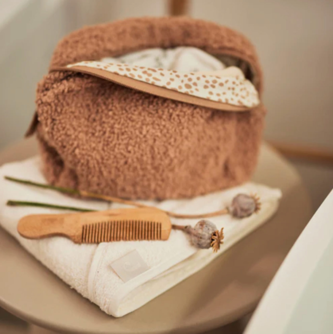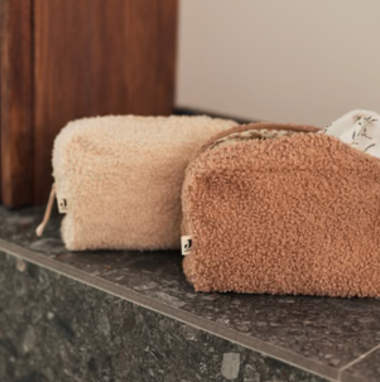 Het etui is gemaakt van boucle teddy en daardoor lekker zacht. In de binnenkant bevindt zich een naamlabel.